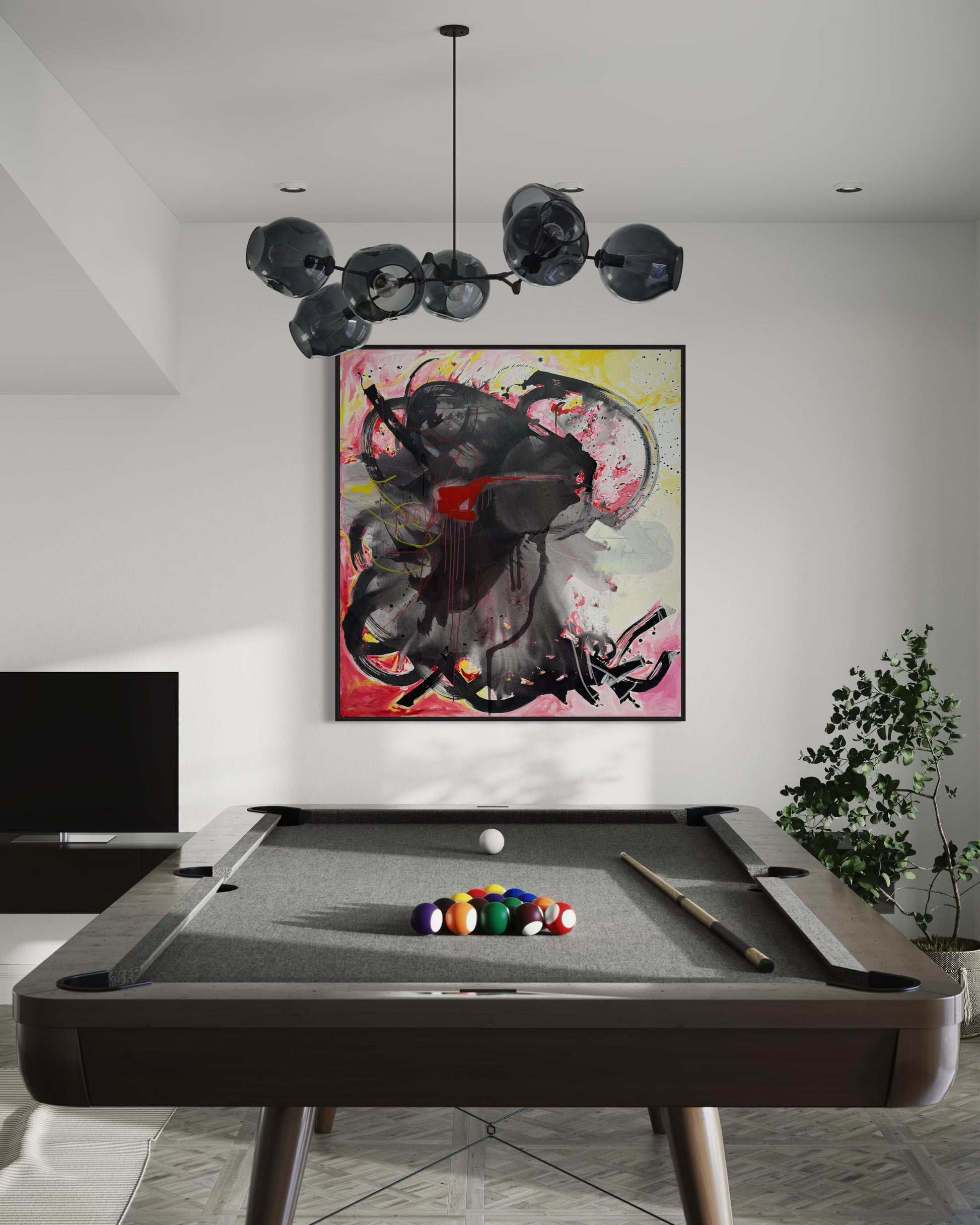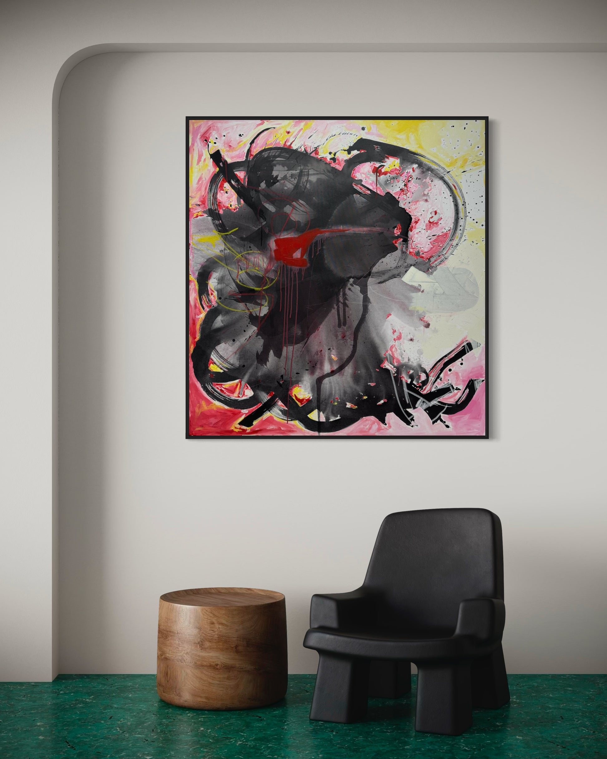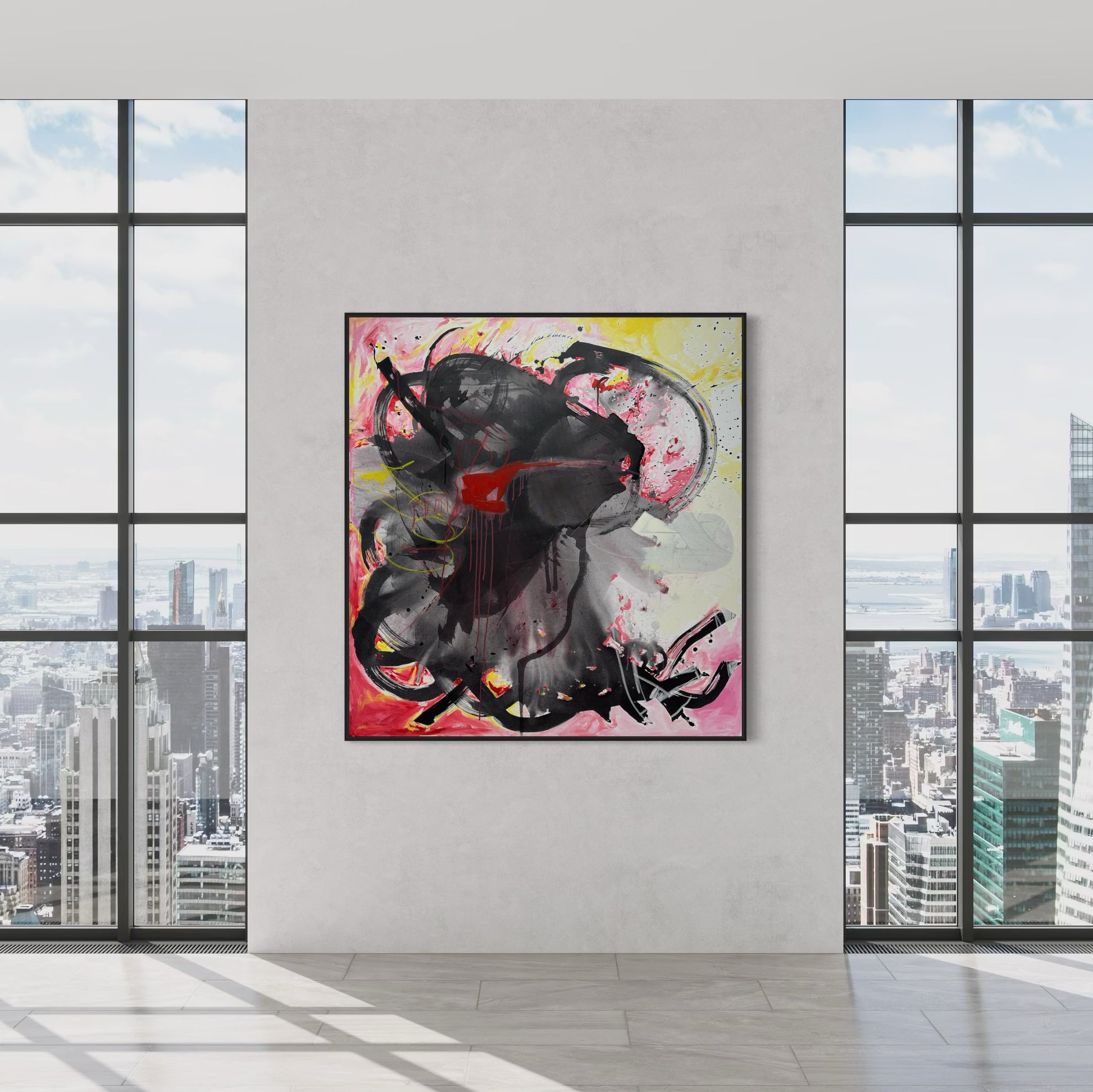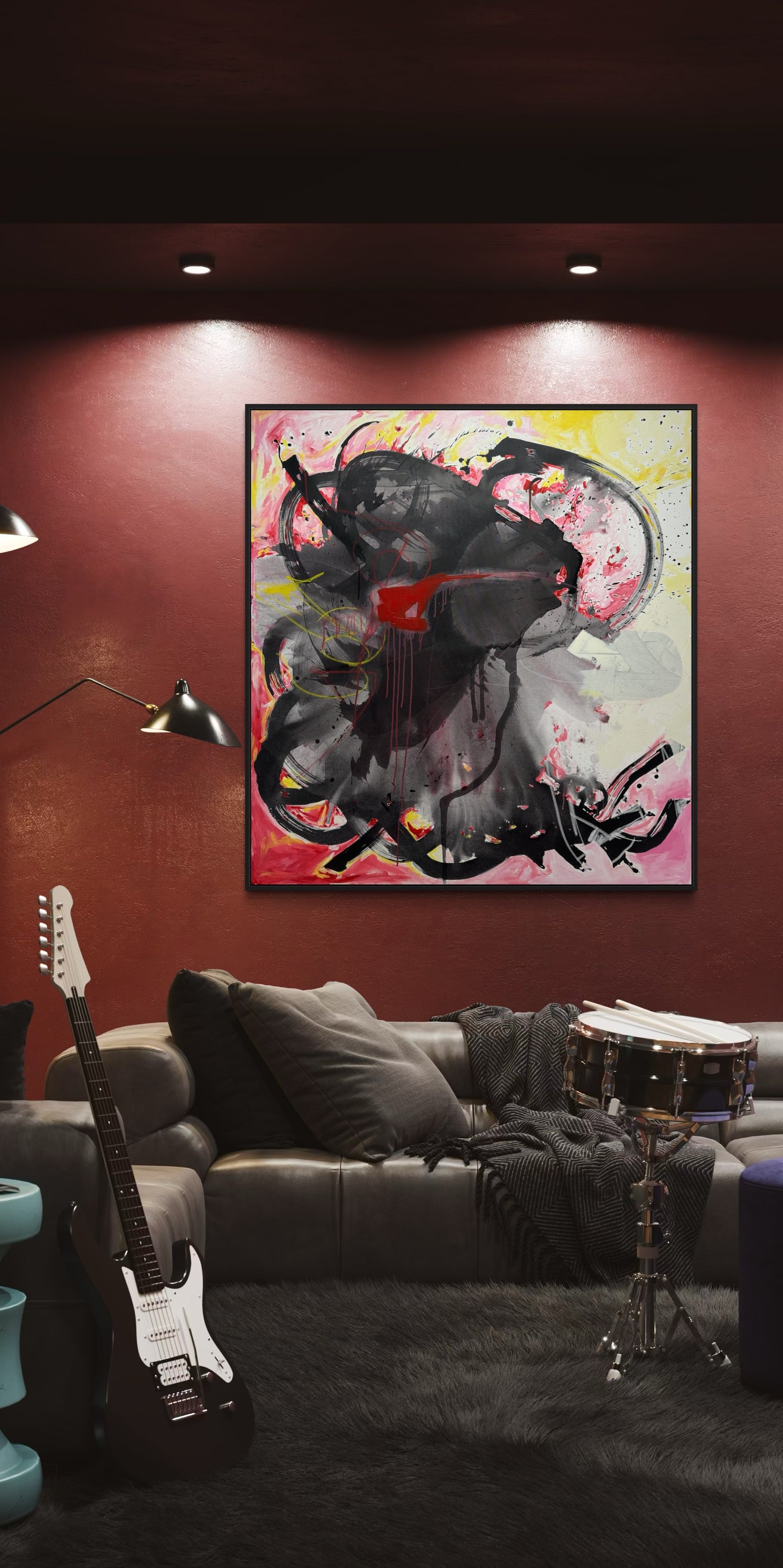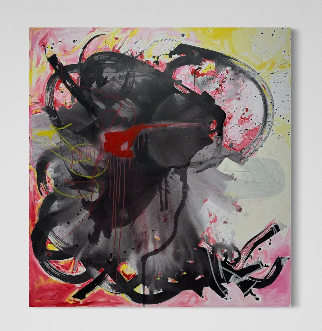 This artwork captures the emotional contrast between sorrow and euphoria, created during a time of personal heartache. The piece combines soft pink tones, symbolizing euphoria and excitement, with a bold red line that cuts through it, representing the pain and heartbreak felt during that period. The red mark is more than just a rupture—it's an expression of raw, intense emotion, evoking empathy and compassion. The painting reflects the idea that joy and sorrow are not opposing forces but are deeply connected. It suggests that true understanding of the world comes from embracing both emotions—the happiness and the pain—and that, together, they create a richer, more compassionate experience.