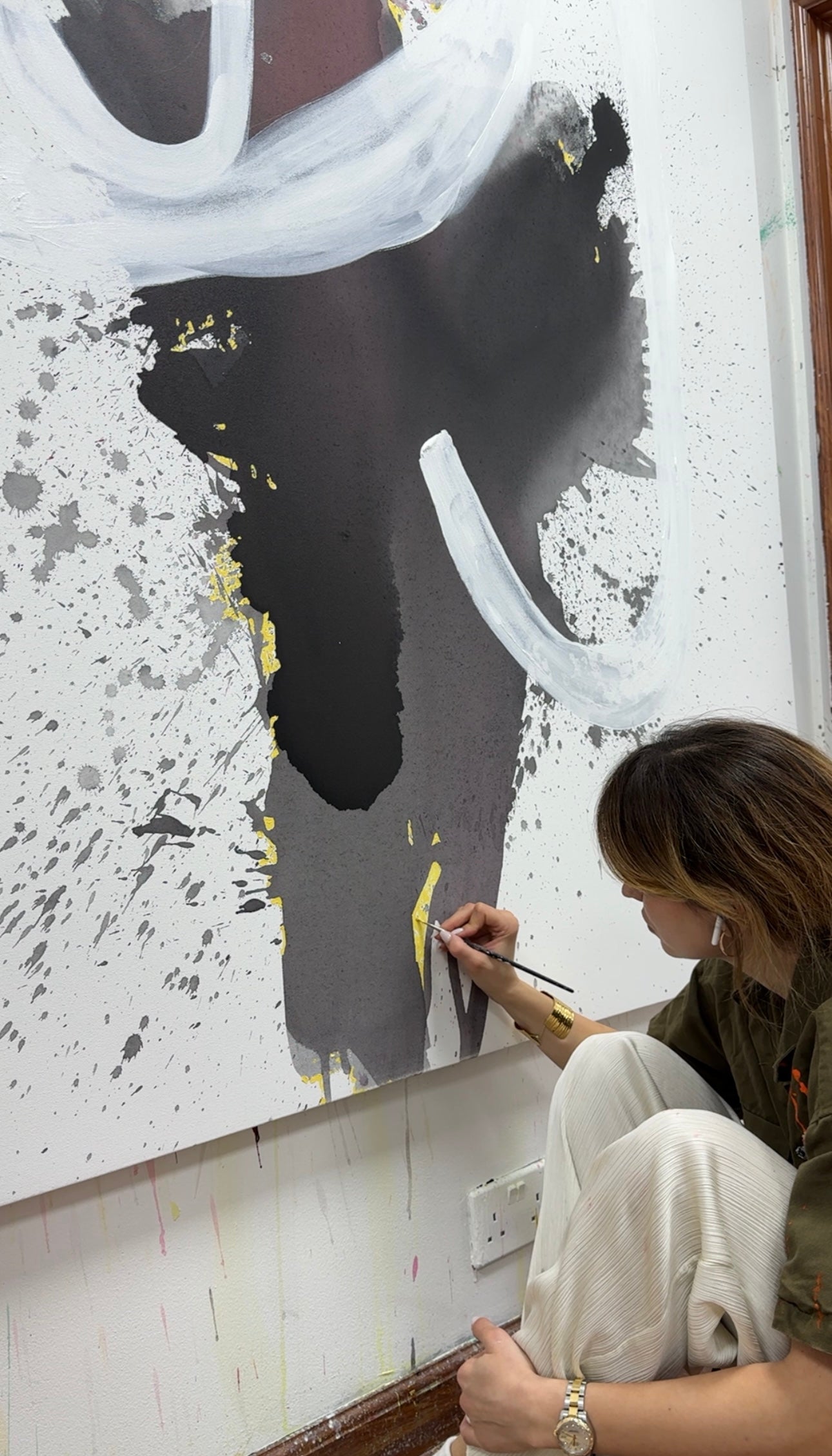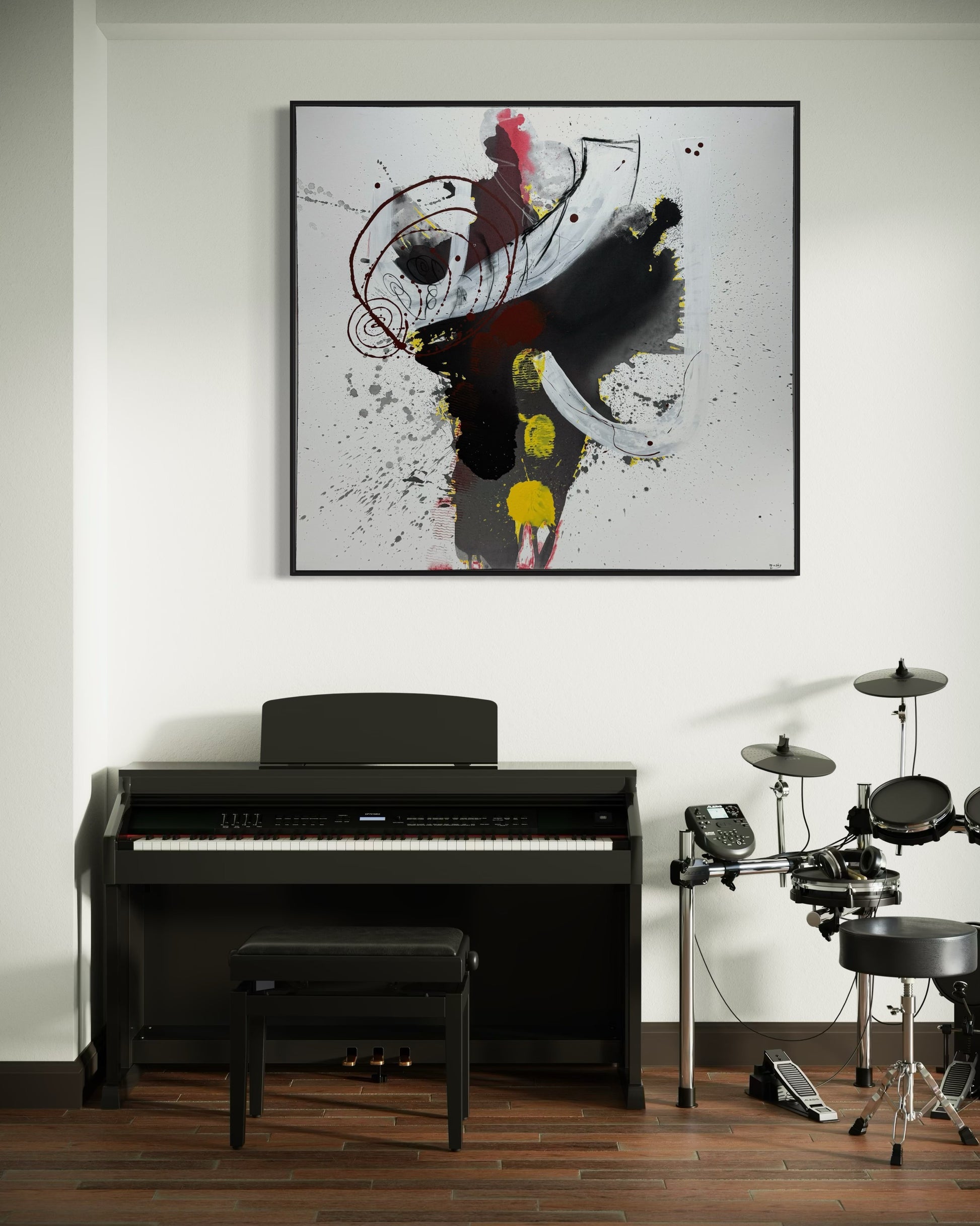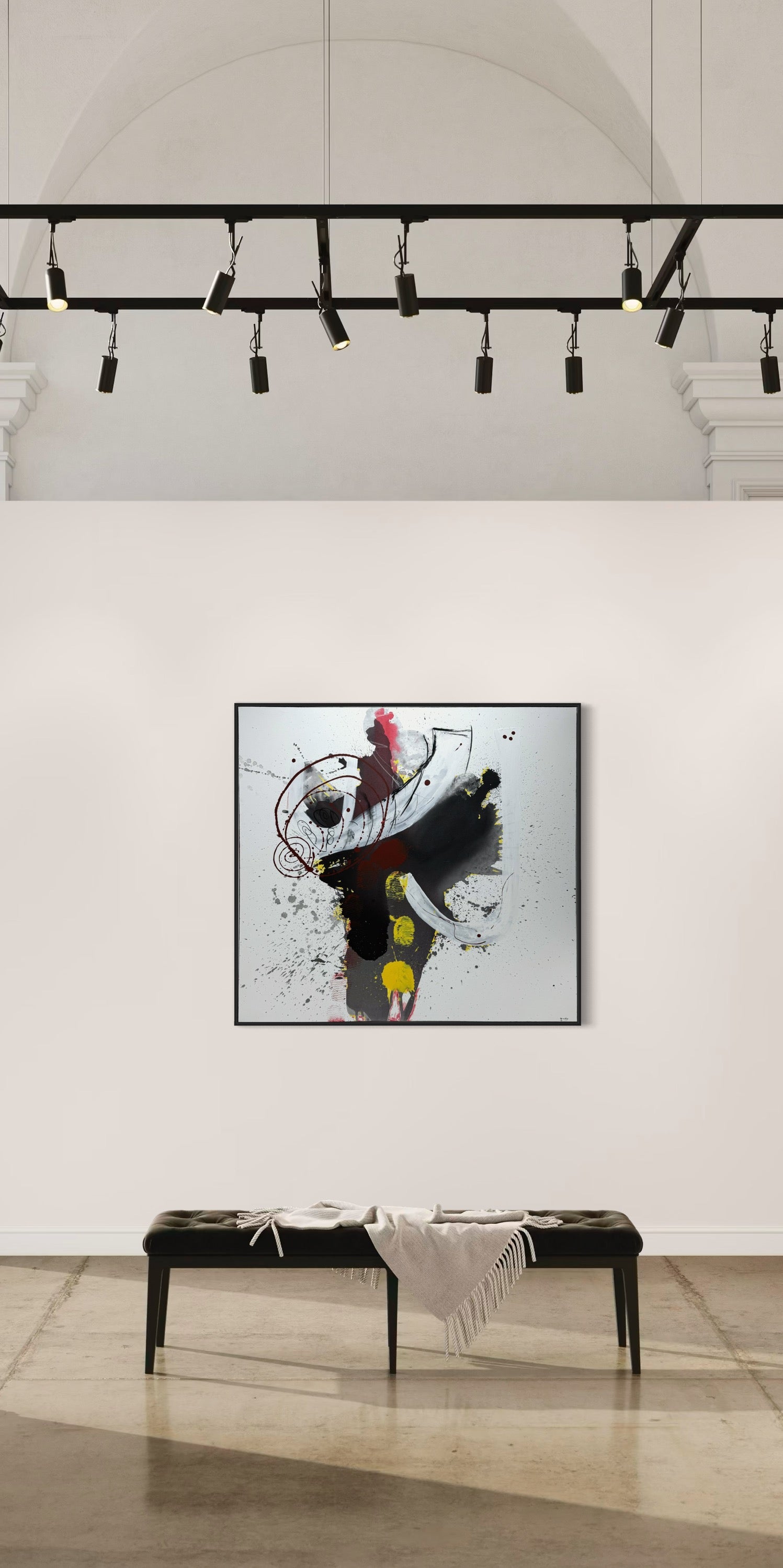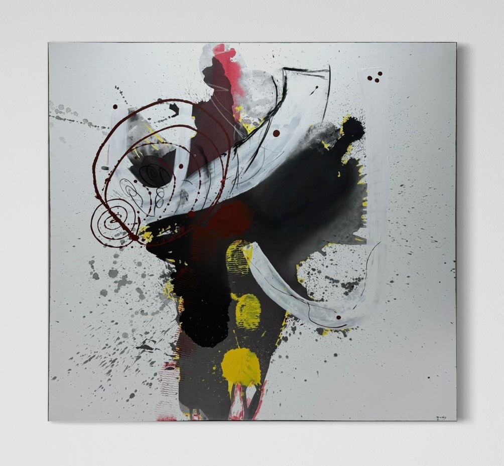 This second version of the artwork expands on the themes of anguish and euphoria, presenting them in a more symbolic form. The central focus is a spiral, representing the passage of time and the repetitive cycle of emotional pain and healing. The soft pink elements from the previous piece reappear, symbolizing moments of joy and euphoria, while the red subtly hints at heartache. The addition of shoe prints further emphasizes emotional progression, suggesting that pain is not an endpoint, but part of a larger journey. Together, the spiral and footprints convey the idea that emotional experiences—both the struggles and the triumphs—ultimately lead to growth and understanding.