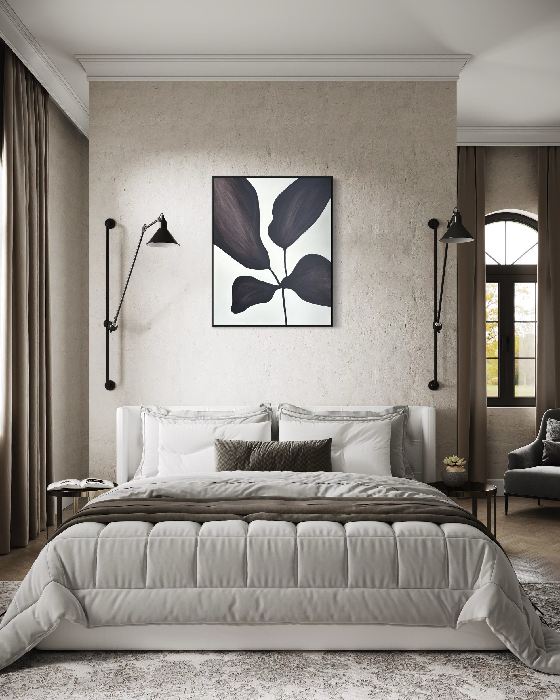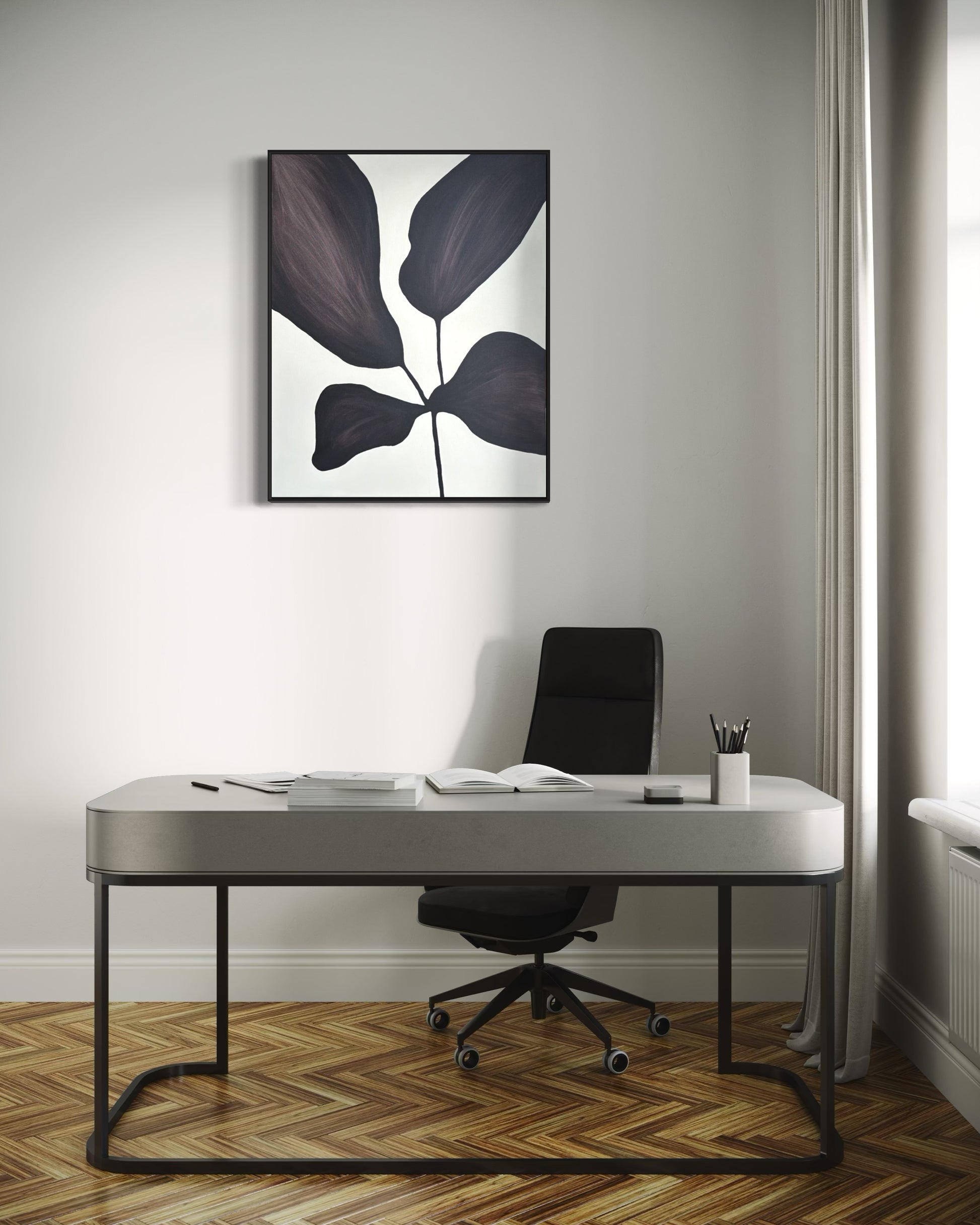 "Black Contour" is a minimalist piece that features a simple black flower, drawn with clean, delicate lines. The artwork is the result of an unique process, where various colours were thoughtfully blended to achieve a deep, rich black, giving the flower a distinct yet subtle presence. Much like its predecessor "Red Contour", this piece embodies quiet elegance, designed to enhance the space with its refined simplicity. The piece is a perfect addition to smaller settings complementing minimalist, modern, and contemporary interiors.